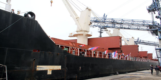 وصلت إلى مرفأ طرطوس باخرة على متنها 5ر31 ألف طن من القمح الطري مقدمة من روسيا الاتحادية في إطار دعمها للسوريين في مواجهة الإرهاب وتداعيات الاجراءات الاقتصادية القسرية أحادية الجانب المفروضة على سورية.