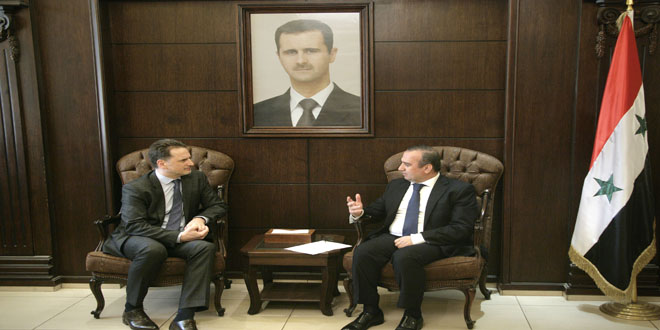 بحث وزير الإدارة المحلية والبيئة المهندس حسين مخلوف مع المفوض العام لوكالة الأمم المتحدة لإغاثة وتشغيل اللاجئين الفلسطينيين “الأونروا” بيير كرينبول والوفد المرافق له سبل توسيع التنسيق والتعاون بين الحكومة السورية والوكالة بهدف زيادة المساعدات للاجئين الفلسطينيين.