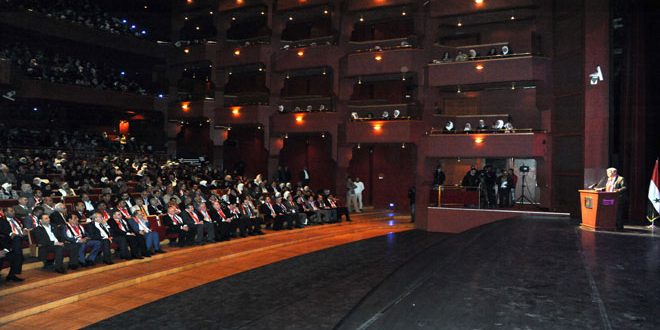 من افتتاح أعمال المجلس المركزي لاتحاد نقابة المعلمين في دار الأوبرا بدمشق