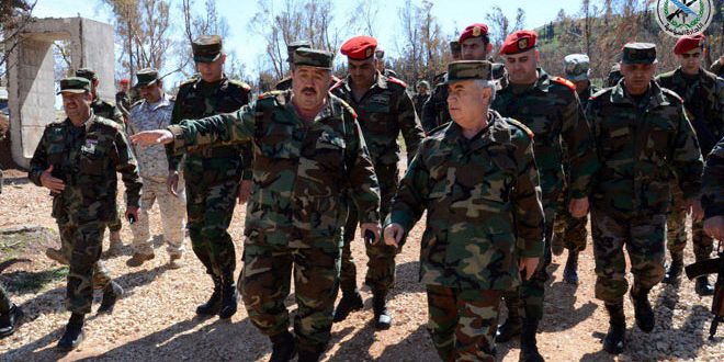بتوجيه من الرئيس الأسد.. العماد أيوب يتفقد عددا من المواقع والنقاط العسكرية في ريف حماة الشمالي