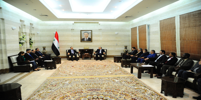 استقبل رئيس مجلس الوزراء المهندس عماد خميس اليوم وفد رجال الأعمال العرب والإيرانيين المشاركين في فعاليات المعرض التخصصي للألبسة ومستلزماتها “سيريا مودا” الذي افتتح يوم أمس في دمشق.