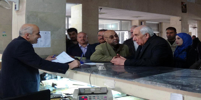 اطلع محافظ درعا محمد خالد الهنوس اليوم على سير العمل في المصارف التجاري و الزراعي و المركزي بمدينة درعا و الخدمات المقدمة للمواطنين و السرعة في تلبية طلباتهم.