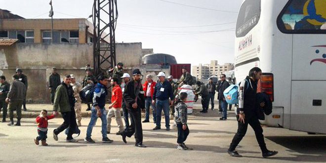 خروج الدفعة الثانية من المسلحين في إطار تنفيذ اتفاق المصالحة من حي الوعر