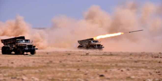 وأفاد مصدر عسكري في تصريح لـ سانا بأن وحدة من الجيش “قضت على 4 إرهابيين من تنظيم جبهة النصرة ودمرت مدفعاً للقذائف الصاروخية وعدداً من الدشم والسواتر والآليات للتنظيم التكفيري وذلك في رمايات مركزة على تجمعاتهم في مغر المير وشرقي كفرناسج” في ريفي دمشق ودرعا.