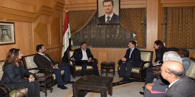 بحث محافظ حلب حسين دياب مع المفوض العام لوكالة الأمم المتحدة لغوث وتشغيل اللاجئين الفلسطينيين الأونروا بيير كرينبول والوفد المرافق اليوم الواقع الإغاثي والإنساني في المحافظة وسبل مساعدة اللاجئين الفلسطينيين ومجالات التعاون والتنسيق المستقبلي.