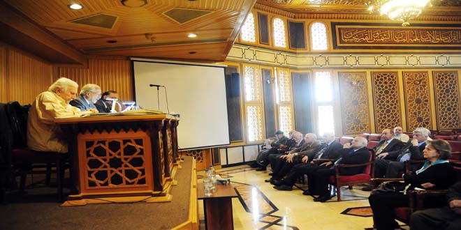 وتحدث العضو الجديد في مداخلته عن الباحثة المجمعية الراحلة الدكتورة ليلى الصباغ التي تتمتع بشخصية قوية وطموح علمي عال حيث نالت شهادة الدكتوراه بمرتبة الشرف من القاهرة عام 1966 وعملت في التدريس الجامعي في أقسام التاريخ والجغرافيا واللغة العربية والآثار بكلية الآداب وفي كلية التربية بجامعة دمشق لسنوات عديدة ثم حظيت دون زميلاتها السوريات بأنها كانت أول سيدة في هذا المجمع نهاية القرن العشرين.