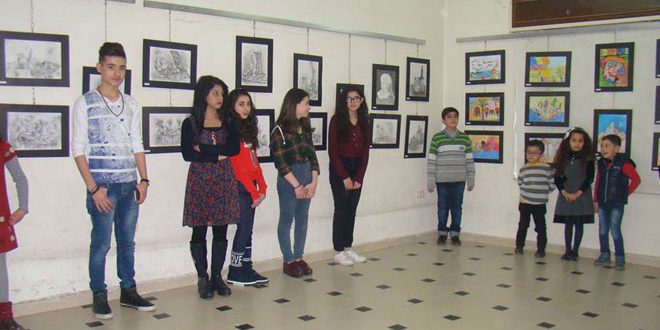 خمسون لوحة لمجموعة من الأطفال واليافعين والشباب ضمها المعرض الفني الذي يقيمه فريق محترف باليت في المركز الثقافي العربي بمدينة جرمانا.