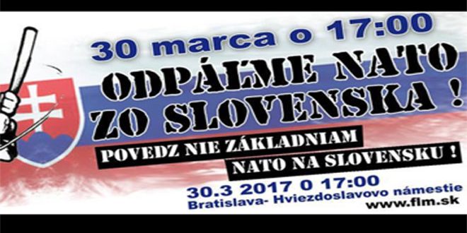 نظم عدد من المواطنين السلوفاكيين مظاهرة أمام السفارة الأمريكية في العاصمة براتيسلافا اليوم احتجاجا على وضع حلف شمال الأطلسي “الناتو” قواعد عسكرية في سلوفاكيا.