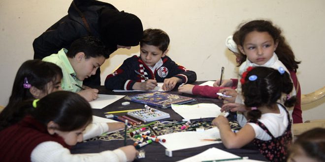 أطفال موهوبون جمعهم حب الرسم ليشاركوا في الورشة الأدبية الفنية التي نظمتها مديرية منشورات الطفل في الهيئة العامة السورية للكتاب في قاعة المعارض بثقافي أبو رمانة.