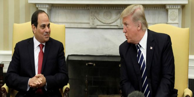 شدد الرئيسان الأمريكي دونالد ترامب والمصري عبد الفتاح السيسي على ضرورة التعاون لمكافحة الإرهاب وإحلال السلام في منطقة الشرق الأوسط.
