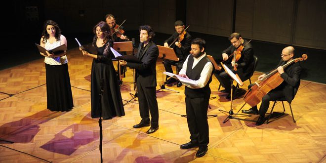 وعلى خشبة مسرح القاعة متعددة الاستعمالات بالدار قدم مجموعة من الموسيقيين السوريين من أساتذة وخريجي المعهد العالي للموسيقا خلال الحفل مساء اليوم عدة أعمال جماعية وفردية لكل من المؤلف الألماني “باخ” والمؤلفين الإيطاليين “بيرغوليزي وفيفالدي” بأصوات “الرباعي الصوتي لدمشق” والذي أداه كل من السوبرانو غادة حرب والميتزو سوبرانو سناء بركات والتينور ناجي حمود والباريتون ميخائيل تادرس”.