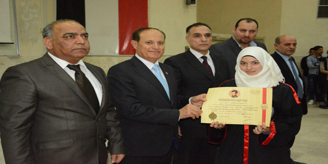 كرمت جامعة البعث بحمص في احتفال أقيم اليوم 60 طالبا وطالبة من الخريجين والحائزين شهادة الباسل للتفوق للعام الدراسي 2015-2016 في كلية العلوم.