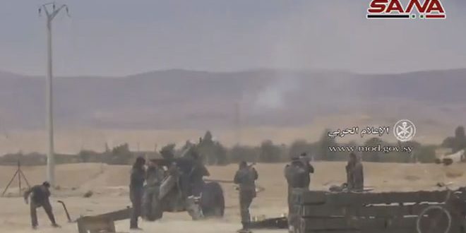 2017-04-06 مشاهد من ضربات المدفعية والصواريخ لتحركات "داعش" على التلال المشرفة على جبل المزبد في تدمر 2017-04-06mohamad