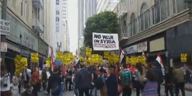 مئات الأمريكيين يتظاهرون في لوس أنجلوس احتجاجاً على العدوان الأمريكي على سورية