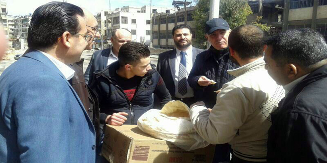ودعا وزير التجارة الداخلية وحماية المستهلك الدكتور عبد الله الغربي خلال إطلاق الإنتاج في المخبز إلى العمل بأقصى سرعة لتجهيز وتشغيل مخبز الوحدة بمنطقة قاضي عسكر على أن يوضع بالخدمة والإنتاج مطلع الأسبوع القادم مؤكداً على مواصلة العمل لترميم وتشغيل وتجهيز باقي المخابز التي دمرتها عصابات القتل والإجرام بالسرعة القصوى للحد من الازدحام على المخابز في حلب ولتكون جميعها بالخدمة بما يضمن استمرار توافر مادة الخبز بنوعية ومواصفات جيدة وبسعره المحدد.