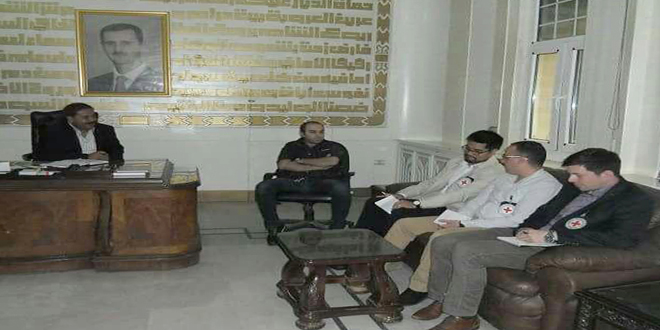 بحث محافظ الحسكة جايز الحمود الموسى اليوم مع وفد من اللجنة الدولية للصليب الأحمر سبل تعزيز التعاون بين الجانبين ولا سيما في مجال عمل مطحنة الحسكة وترميم المشفى الوطني بالمدينة.
