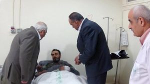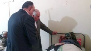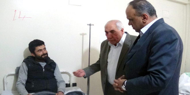زار محافظ درعا محمد خالد الهنوس وأمين فرع درعا لحزب البعث العربي الاشتراكي كمال العتمة اليوم جرحى الجيش العربي السوري في المشفى الوطني بدرعا.