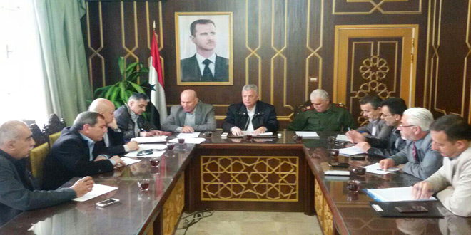 حضر الاجتماع عضو المكتب التنفيذي المختص لمجلس المحافظة حسين صافي ورئيس اتحاد فلاحي السويداء ومديرو الزراعة والاقتصاد والصناعة والتجارة الداخلية وحماية المستهلك وفرع المحروقات.