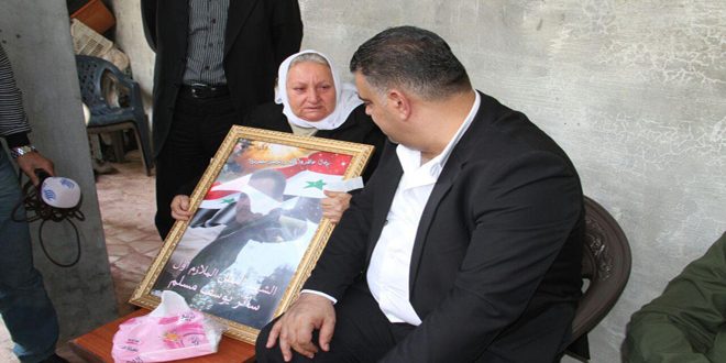 جاء ذلك خلال زيارة قام بها محافظ طرطوس صفوان أبو سعدى إلى منازل عدد من أسر الشهداء والجرحى في مدينة بانياس والذين حصل البعض منهم على مشاريع تنموية عن طريق مكتب الشهداء والجرحى بالمحافظة.