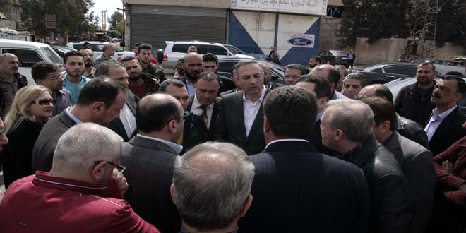 وناقش محافظ ريف دمشق مع رئيس غرفة صناعة دمشق وريفها سامر الدبس والصناعيين والجهات المعنية خلال الجولة سبل إيجاد آليات لتسهيل دخول الصناعيين والعاملين إلى المنطقة الصناعية دون عوائق تؤثر على عملية الإنتاج.