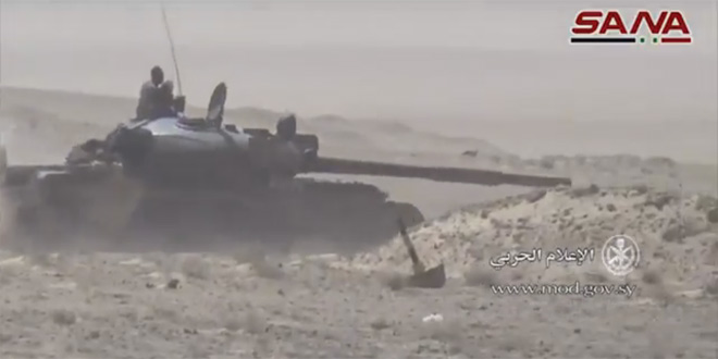 الجيش يدمر أوكارا لإرهابيي “داعش” على السفوح الجنوبية لجبل المزبد وتلة التاج بريف تدمر