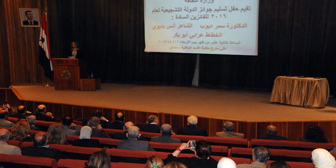 أقامت وزارة الثقافة اليوم حفلا تكريميا للفائزين بجوائز الدولة التشجيعية في مجالات الأدب والفنون في مكتبة الأسد الوطنية بدمشق بحضور نخبة من الشخصيات الثقافية والأدبية.