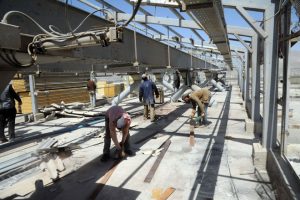 وشكل تراكم كميات كبيرة من الأنقاض والعوائق داخل وخارج بناء الصومعة والذي خلفته المجموعات الإرهابية المسلحة عائقاً في حركة آليات الإصلاح فكانت بداية العمل بترحيل هذه الأنقاض بكمية تقريبية بلغت 6000 متر مكعب من الموقع خاصة من أقبية تجهيزات نقل الحبوب حسب الخطيب الذي يبين أنه يتم العمل الان على تأهيل المنشأ المعدني وترحيل الألواح المعدنية القديمة فيه واستبدالها بألواح “الشاندوتش بانل” الجديدة والتي تقوم الرافعات بتحميلها نظراً لعلو المنشأ المعدني.
