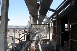 وأوضح الخطيب أن نسبة الضرر والتخريب في الصومعة كانت 80 بالمئة أي نسبياً في كامل بناء الصومعة لاسيما “مبنى الهيد هاوس والمنشأ المعدني العلوي في الصومعة” مشيراً إلى أن العمل على إعادة التأهيل يتم “بوتيرة عالية حيث تم منذ بداية العمل بالعقد منذ شهرين ونصف حتى الآن تنفيذ ما يقارب 30 بالمئة منه وستكون الصومعة بنهاية عام 2017 جاهزة كبنى تحتية للبدء بالمرحلة الثانية من العمل المتمثلة بتأمين التقنيات التكنولوجية وفق عقود مع شركات الأخرى”.