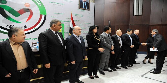 تشجيعا للبحث العلمي كرم فرع دمشق لحزب البعث العربي الاشتراكي اليوم الفائزين بحلقات البحث من الفرق الحزبية الفرعية والبالغة 3 حلقات حملت عناوين “المشروعات الصغيرة والمتوسطة في المرتبة الأولى” و “دراسة أوضاع مواقعنا الأثرية والتراثية… افاميا نموذجا” في المرتبة الثانية و”الماسونية وصناعة الوهابية” في المرتبة الثالثة.