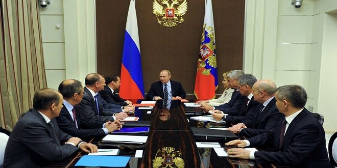 أعلن المتحدث الرسمي باسم الرئاسة الروسية ديميتري بيسكوف أن الرئيس الروسي فلاديمير بوتين بحث اليوم مع الأعضاء الدائمين في مجلس الأمن الروسي الوضع في سورية وكذلك آفاق تطوير العلاقات الروسية الأمريكية في هذا السياق.