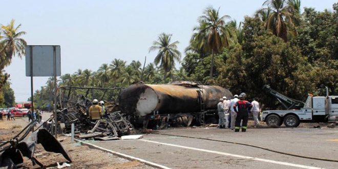 أعلنت السلطات المكسيكية مصرع 24 شخصا على الأقل وأصيب تسعة آخرون جراء اصطدام حافلة بشاحنة وقود جنوب غرب البلاد.