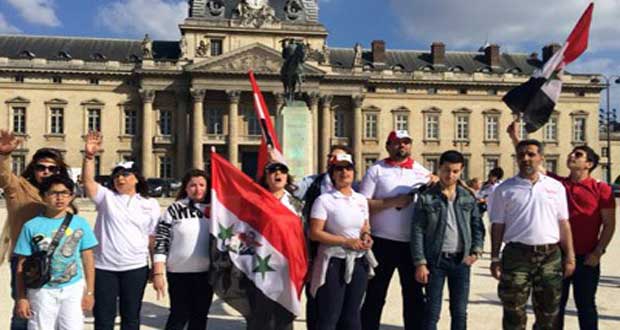 ورفع المشاركون عالياً في سماء باريس علم الوطن وصور الرئيس الأسد.
