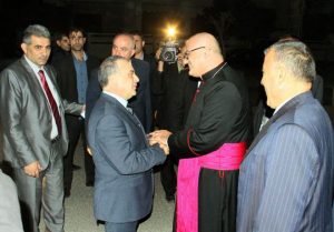 وهنأ رئيس مجلس الوزراء المهندس عماد خميس والوفد الحكومي المرافق الطوائف المسيحية في طرطوس بعيد الفصح المجيد في مطرانية الروم الكاثوليك والأبرشية المارونية بالمدينة وقال “أنقل لكم رسالة معايدة من السيد الرئيس بشار الأسد فنحن شعب مؤمن بوحدة سورية ونحن خلف قيادته الحكيمة قدوتنا بالنصر” مؤكدا أن السوريين صمدوا وحافظوا على الوطن من خلال اللحمة الوطنية والعيش المشترك منوها بالدور الذي يقوم به كل أبناء الوطن كل من موقعه في مكافحة الإرهاب والتصدي له.