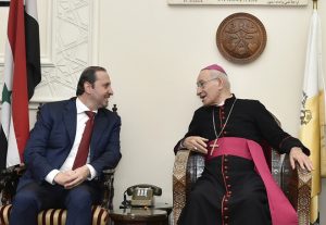 2017-04-16 وزير شؤون رئاسة الجمهورية يزور رؤساء الطوائف المسيحية مهنئاً بعيد الفصح المجيد 2017-04-16admin