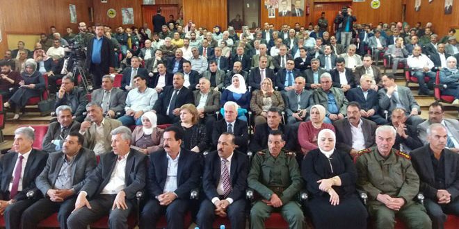 وجدد أبناء الجولان والقنيطرة خلال المهرجان الخطابي الذي أقيم اليوم على مسرح كلية التربية الرابعة بمناسبة عيد الجلاء اصرارهم على استكمال طريق الكفاح الذي خطه الأجداد والآباء حتى تحرير كامل تراب الجولان العربي السوري المحتل.
