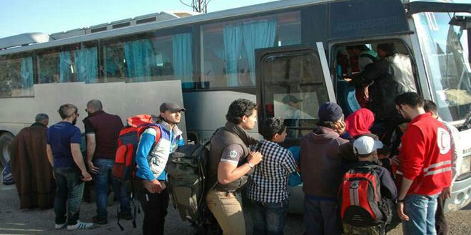 وذكر مراسل سانا في حمص أنه خرج من حي الوعر 21 حافلة تقل على متنها 170 مسلحا وبعض افراد عائلاتهم وفق البرنامج المحدد لتنفيذ اتفاق المصالحة لافتا إلى أن “عملية خروج المسلحين وبعض افراد عائلاتهم مستمرة حاليا حتى اتمام خروج الدفعة الخامسة بشكل كامل اليوم”.