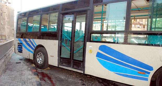 وذكر مصدر في قيادة الشرطة لمندوبة سانا ان انفجارا في احدى عجلات الحافلة ادى الى فقدان السائق السيطرة عليها وانحرافها عن مسارها واصطدامها بالرصيف ما ادى الى اصابة ثلاثة مواطنين بجروح حالة احدهم خطيرة وتضرر سيارتين.