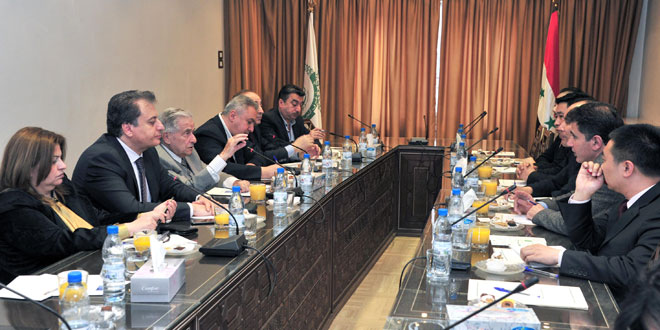 بحث مجلس إدارة اتحاد غرف التجارة السورية مع وفد جمعية الرابطة الصينية العربية مجالات التعاون بين الشركات السورية ونظيراتها الصينية وسبل تحفيز ودعم الشركات الصينية للدخول في مجالات الاستثمار ومشاريع البناء والاعمار في سورية .
