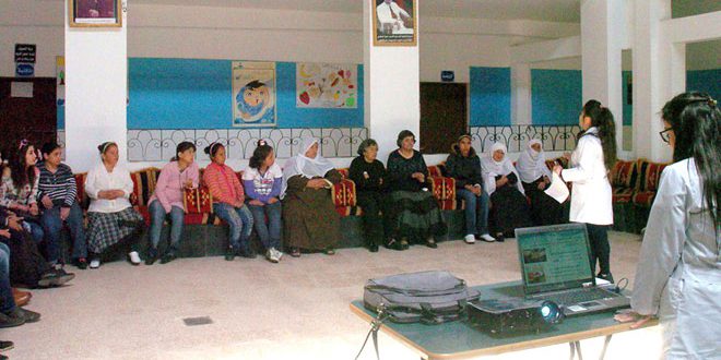 نظم فرع السويداء للاتحاد الوطني لطلبة سورية اليوم بالتعاون مع طلاب مدرسة التمريض بالسويداء يوما للتوعية والرعاية الصحية في مقر جمعية الرعاية الاجتماعية.