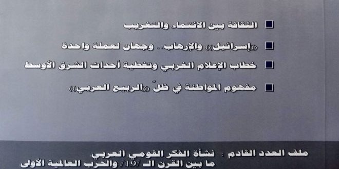 تضمن العدد الجديد من مجلة الفكر السياسي الفصلية الصادرة عن اتحاد الكتاب العرب عددا من الدراسات حول الثقافة الصهيونية والعثمانية الجديدة والإعلام الغربي وغيرها.