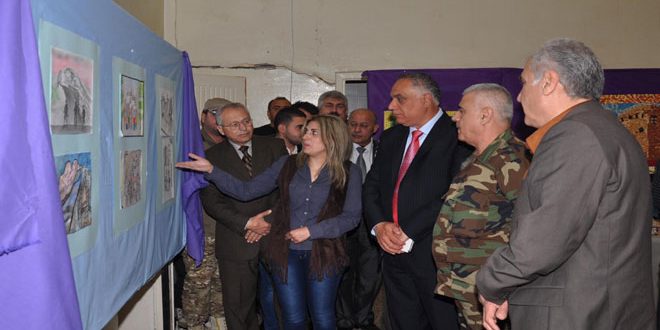 وبين رئيس دائرة المسرح المدرسي أسامة عيسى أن المعرض الفني يتضمن 46 عملا فنيا من مخلفات البيئة إضافة إلى لوحات فن تشكيلي وهو معرض متنوع ساهم فيه الطلاب والمدربون مشيرا إلى أن أغلب اللوحات تتحدث عن بطولات الجيش العربي السوري وانتصاراته وأعياد نيسان والأمل بالنصر القادم.