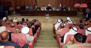 وأكد أن سورية ماضية بعزيمة أقوى وإرادة اكبر لمحاربة الإرهاب وداعميه بفضل صمود أبنائها الشرفاء من كل أطياف المجتمع متلاحمين مع أبطال الجيش العربي السوري الذين يخوضون معارك الشرف والكرامة خلف القيادة الحكيمة للسيد الرئيس بشار الأسد.
