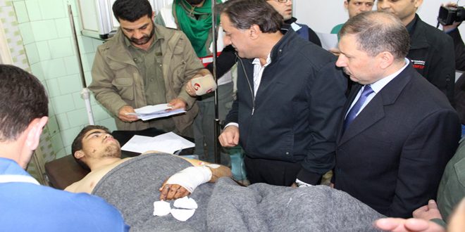 اطلع محافظ حلب حسين دياب وأمين فرع حلب لحزب البعث العربي الاشتراكي فاضل نجار على الأوضاع الصحية للجرحى والمرضى من أهالي الفوعة وكفريا الذين تم نقلهم إلى مشفى الجامعة وعلى الخدمات المقدمة في مراكز الإقامة المؤقتة.