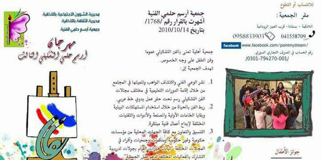 تنطلق غدا بدار الأسد للثقافة فعاليات مهرجان ارسم حلمي التشكيلي الثالث الذي تقيمه جمعية ارسم حلمي الفنية بالتعاون مع مديريتي الشؤون الاجتماعية والثقافة بالمحافظة.