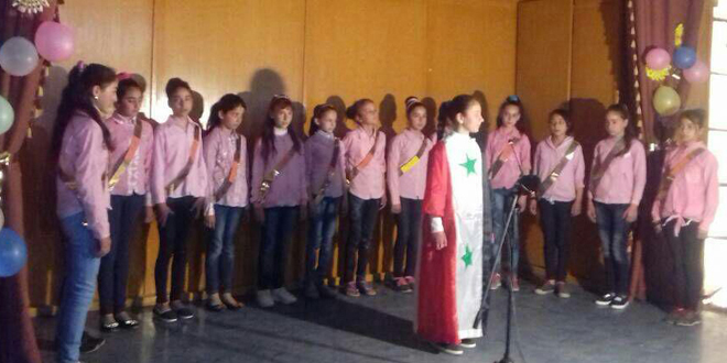 وشارك أطفال فرقة القناقية بفقرة غنائية بعنوان “أمي نبع الحنان” تعبيرا عن الأم سورية التي تحتضن بمحبتها جميع أبناء شعبها الصامد والمقاوم للإرهاب.