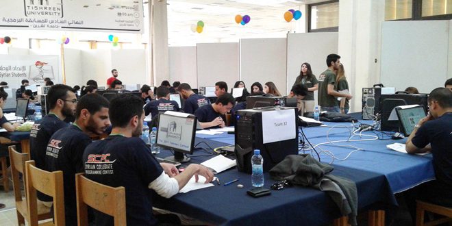 نظمت جامعة تشرين بالتعاون مع فرع الجمعية العلمية السورية للمعلوماتية في اللاذقية اليوم فعاليات النهائي السادس لمسابقة البرمجية بمشاركة 41 فريقا من طلاب كليات المعلوماتية والهندسة الميكانيكية والكهربائية والمركز الوطني للمتميزين والأكاديمية العربية للعلوم والتكنولوجيا وذلك في المكتبة المركزية بالجامعة.