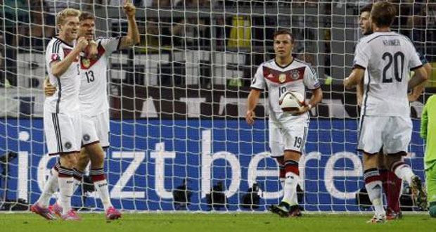 فاز المنتخب الالماني بطل العالم على نظيره الاسكتلندي أمس بهدفين مقابل هدف في افتتاح مشوار تصفيات بطولة اوروبا لكرة القدم 2016.