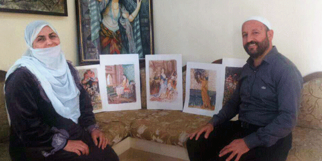 عشقهما للفن وشغفهما بالتراث كان دافعا للفنانين النحات باسل ذياب والتشكيلية ماجدة قرضاب لتحويل منزلهما الزوجي في مدينة السويداء الى معرض فني دائم ضم بين جدرانه أعمالا فنية أضفيا عليها من إحساسهما وأسلوبهما الجميل رونقا خاصا يسحر كل من يدخله.