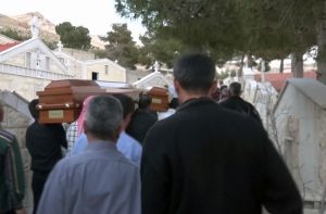 وبعد الصلاة الجنائزية شيع الشهداء إلى مثواهم الأخير حيث ووروا الثرى في مقبرة البلدة.
