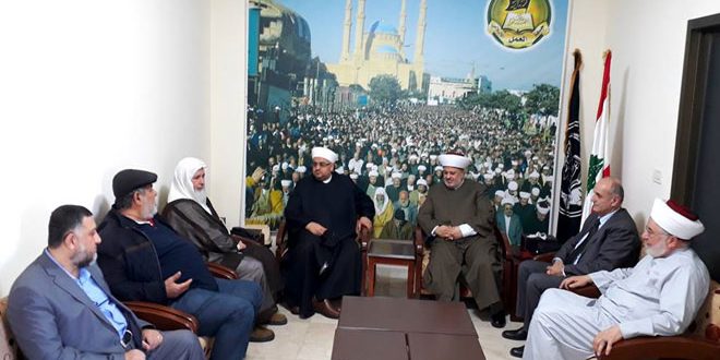 بحث الشيخ الدكتور زهير الجعيد منسق عام جبهة العمل الإسلامي في لبنان خلال لقائه في بيروت اليوم وفدا من وزارة الاوقاف في سورية الأوضاع العامة في المنطقة وخصوصا الوضع في سورية ومجريات الأحداث السياسية والميدانية.